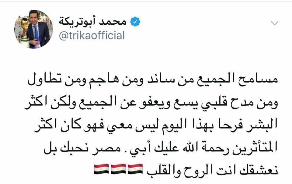موقع كابتن مصر الرياضى رسميا : المحكمة تبريء حبيب الملايين محمد ابو تريكه من التهم الموجهة اليه واسمه ليس في قائمة الارهاب بعد الان ويمكنه العودة لمصر اي وقت.