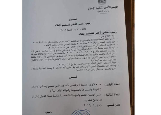 قرار المجلس الأعلى للإعلام بمنع ظهور مرتضى منصور